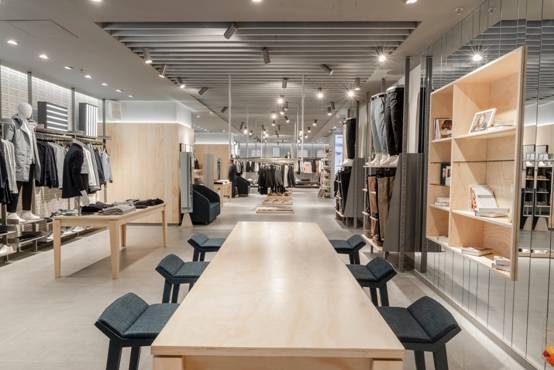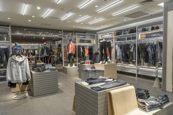 店铺内部装饰融入简约而富有设计感的北欧家具,流畅的线条结构将各个产品区区分开来,分别展示了杰克琼斯经典的商务休闲系列、都市运动系列以及牛仔系列。有别于传统店铺,该旗舰店特别增设了“Brand Co-lab”和“Season area”区域,用以展示杰克琼斯跨界合作系列和设计师当季精选潮品。