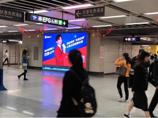 李易峰、易烊千玺、黄子韬、杨紫、邓伦等五位一线明星代言助力百度APP抢票神器,通过深圳虎童科技有限公司的地铁大屏惊艳亮相,为深圳的用户送来祝福。