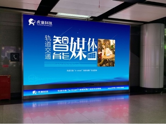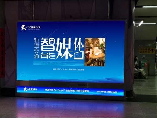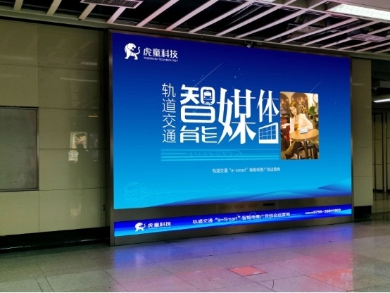 深圳虎童科技有限公司定位为“轨道交通e-smart智能场景广告综合运营商”。在地铁高清智能互动大屏的规划和运营中,虎童科技投入巨大财力和人力,力争在同类地铁广告媒体中打造坚固可靠的资源优势和硬件优势,在纵贯深圳中轴、日均客流量约为90万日均人次的深圳地铁4号线内,虎童科技投入运营平均面积约10平方米的小间距LED显示、最高分辨率可达4K的智能大屏的智能高清互动大屏,全面覆盖九个以上换乘大站与二十个以上商业综合体,通过16:9黄金画面比例呈现还原度极高的色彩画面,在每块智能大屏上匹配高质感的音响设备、完善的实时监播功能和体感互动功能,结合自行研发的广告效果统计及分析系统,正在形成自有的专利池与数据池,力求将投放的广告效果数据化,让传播效果清晰精准。