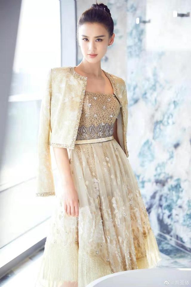 黄圣依穿上blingbling的仙女裙,清新明媚充满了少女感。黄圣依的肤色很白,仙女裙深v领的设计多了很多的女人味,搭配她简单而精致的妆容,简约又知性的女神气质。裙子上的亮片设计显得黄圣依的气质十分清新。