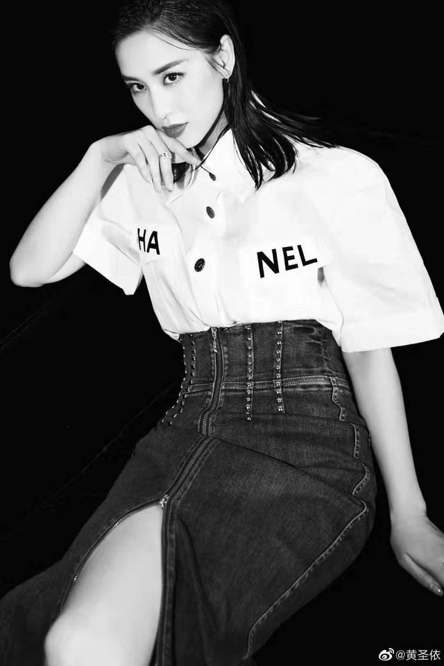 别致优雅的经典黑白配,多了点霸气的感觉。黄圣依的这身搭配简直太酷了,白色短袖衬衫搭配高腰开叉牛仔半身裙,满满的高级感。炫酷又不失女人味,霸道又有气质的时尚女郎!美爆了哦~