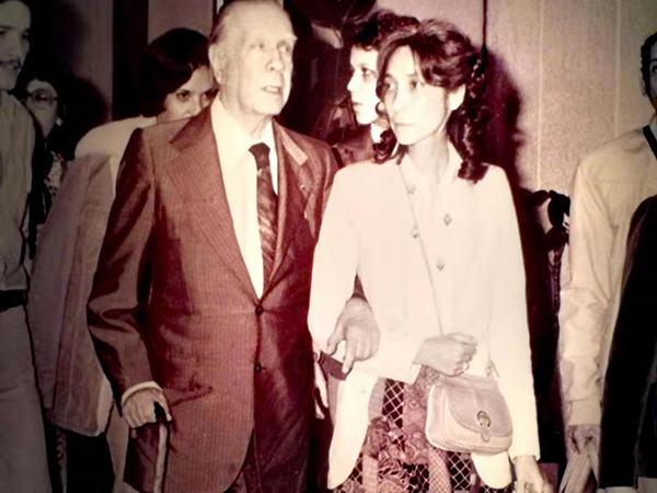 玛丽亚·儿玉是博尔赫斯最后一任妻子,她陪伴博尔赫斯走完人生最后的时光。在展览现场,她对观众回忆起自己16岁时与博尔赫斯初识的经历:“我喜欢文学,梦想成为一名文学讲师,但大家都觉得我太害羞了,无法在讲台上大声地说话——直到我见到博尔赫斯,他比我更害羞,说话的声音更轻柔,我想,既然他能做一个很好的文学讲师,那我也一定行。”
