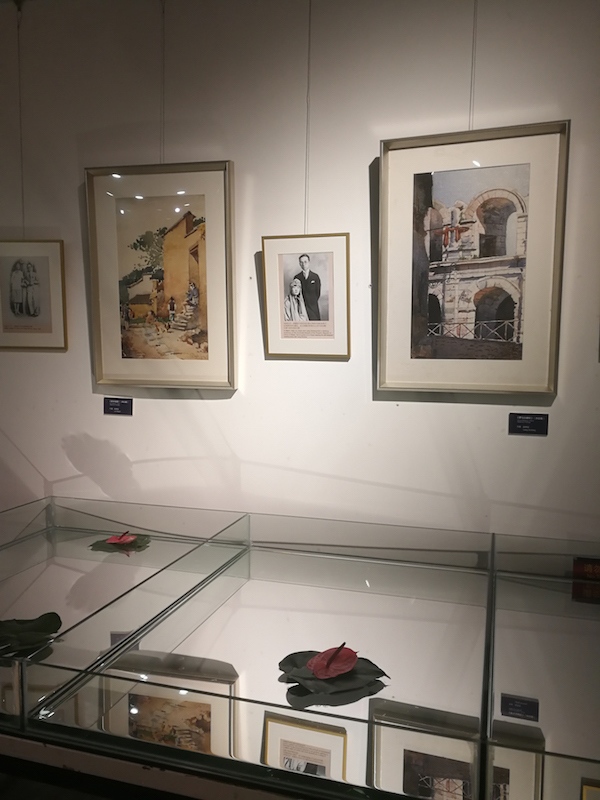 展览现场,梁思成、林徽因的水彩画与结婚照。