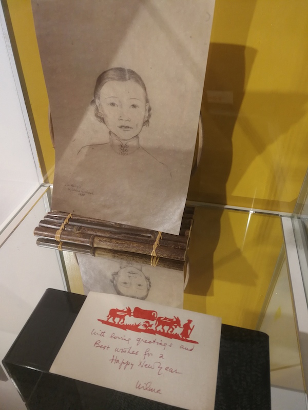 费慰梅手绘林徽因肖像、费慰梅赠予林徽因的新年贺卡。