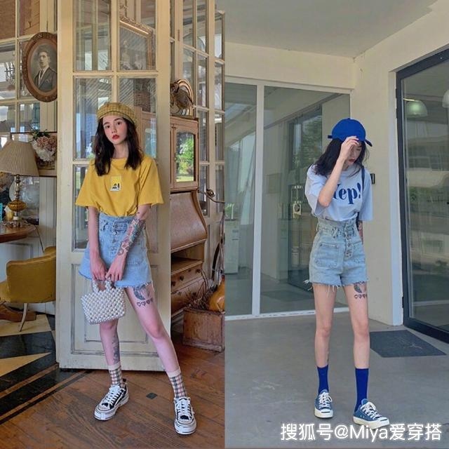 LOOK1中筒袜+牛仔热裤