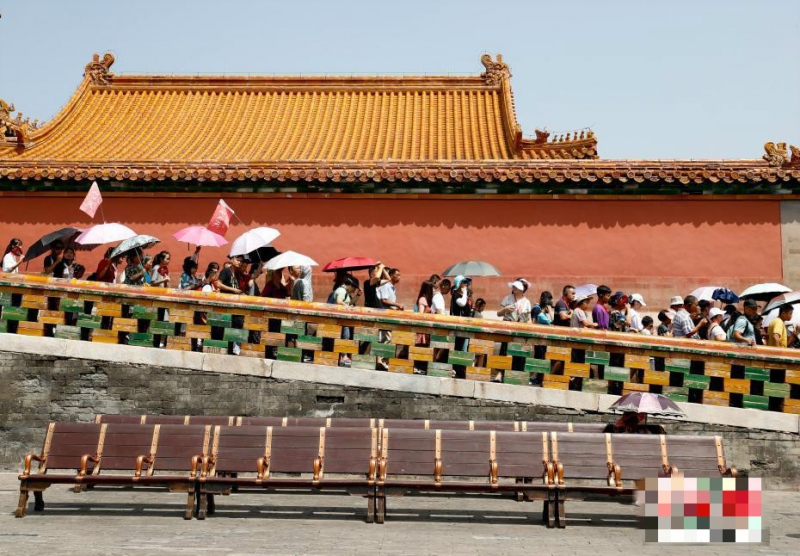 7月30日,北京雨后气温回升,故宫景区游人如织。中新社记者 杜洋 摄