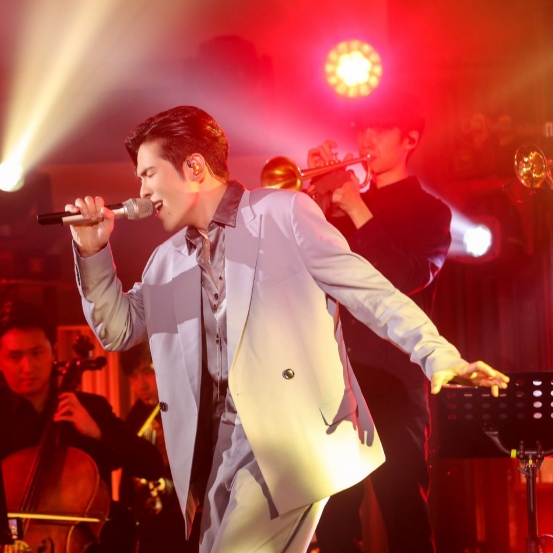 还有谁能比萧敬腾更老练英俊?浅灰色西装调配缎面内搭,英俊十足