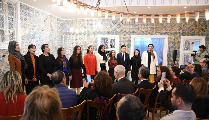 2月29日,在突尼斯首都突尼斯,突尼斯高级言语学院中文专业学生在音乐会上演唱《大我国》。华社发 (阿代尔摄)