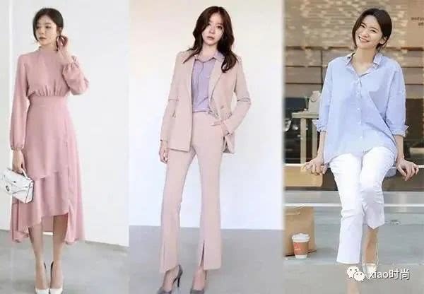 藕粉色归于裸色,特别温文,一般不会和衣服有抵触,和淡色的衣服搭起来有仙仙的风格,同色系的连衣裙加上不规则的下摆,特别潇洒典雅,并且这个色彩很衬肤色,即使肤色稍暗的女生也能轻松驾御,浅蓝色特别新鲜,调配百搭的白色裤子,更显知性,很合适轻熟风的女生。