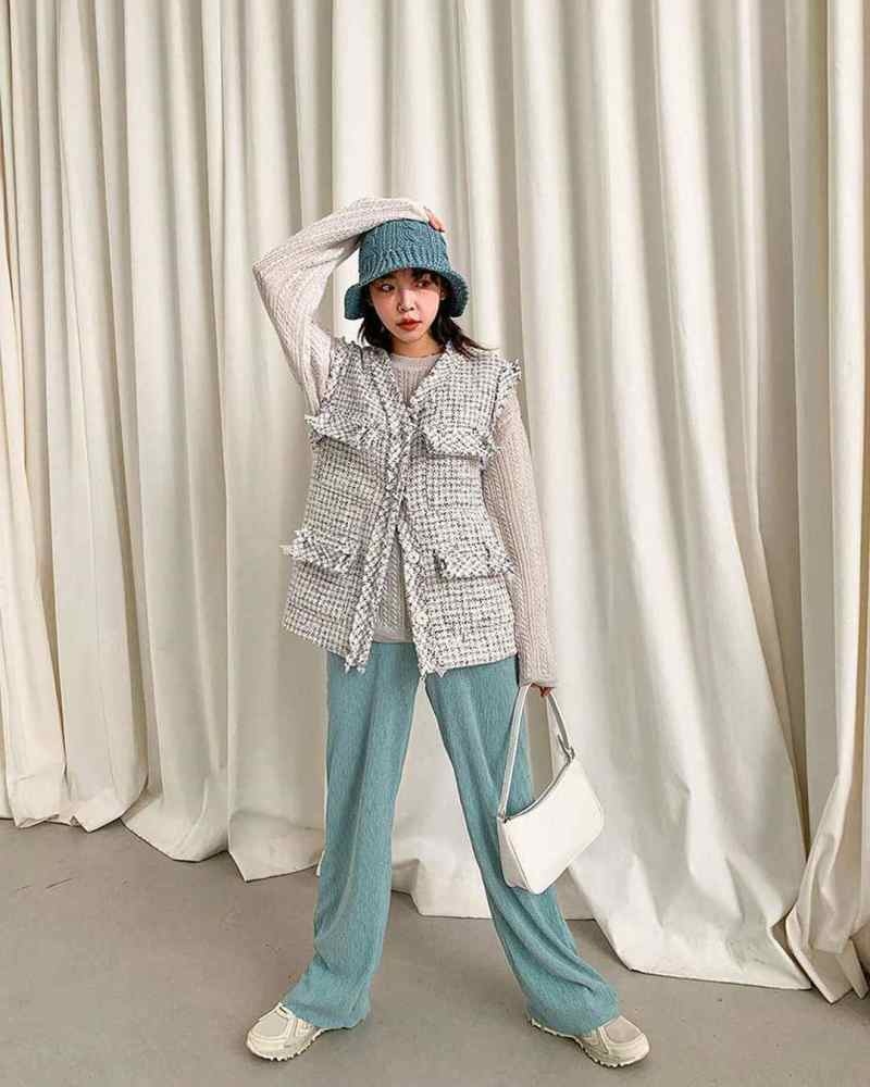 浅显点说便是针织开衫,打开的规划,将针织衫赋予了外套的含义。穿奶奶衫要考虑内搭的穿戴重要性,外搭若是中长款,能够再一次进行挑选内搭别在裤子里,干净妥当,这样打造出来的穿戴作用会很高挑,一起统筹风姿和温度。