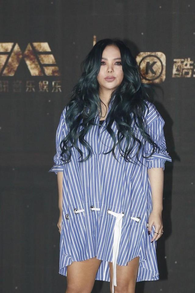 张惠妹尽管胖但很自傲,穿长款条纹衬衫,配孔雀蓝长卷发时髦洋气!一头平分的孔雀蓝大波浪卷发十分的时髦抢眼,大波浪的发型能够很好地润饰脸部线条,平分更是能够挡住脸部剩余的部分,使得张惠妹秒变瓜子脸。