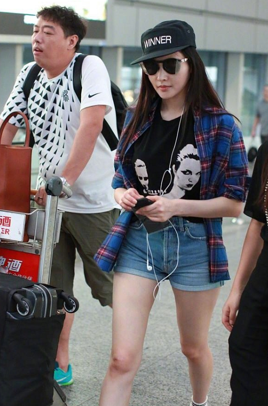 并且张天爱周围的这一位女助理也并没有张天爱穿的这么的随性,黑色T恤调配黑色阔腿裤以及黑色的凉鞋,整组黑色的look十分的低沉,不会抢了张天爱的风头,张天爱的上身T恤和格子衬衫的调配,再加上牛仔短裤的组合,是十分随性又充满了夏天气氛的一组调配,感觉挑选一双黑色的帆布鞋来照应就可以了。