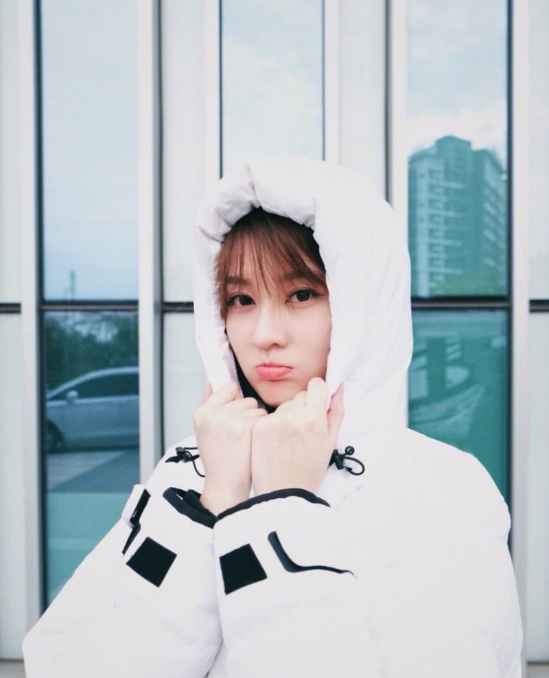 她穿戴简略的黑色T恤,调配黑色紧身裤,配上黑色马丁靴,一致的黑色彩调配,全体看起来十分显瘦、显高,瞬间腿长一米八,外搭一件扎实保暖的白色羽绒服,帽子戴起,呆萌而又心爱。