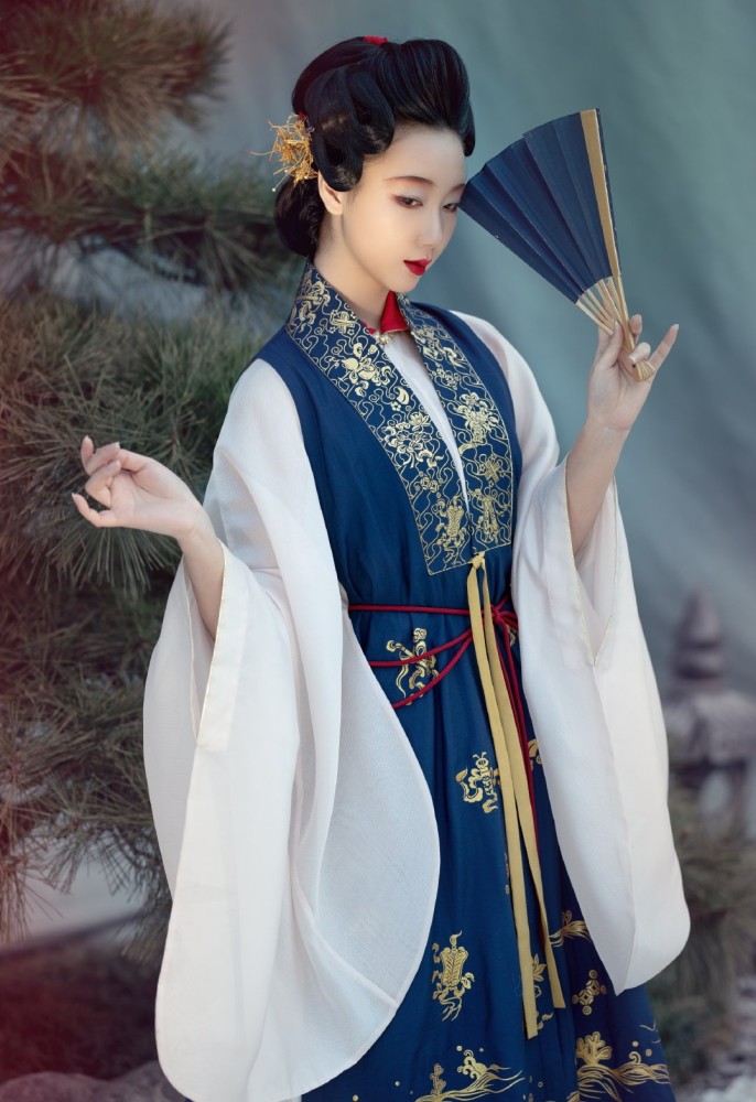 要说最显瘦的汉服形制,坦领排第二的话,那么没有其他形制能够排榜首了,坦领汉服是唐朝的一种形制。咱们都知道唐朝国力强盛,所以那个时候的人大多身形丰腴,所穿的衣服天然也是十分显瘦的。
