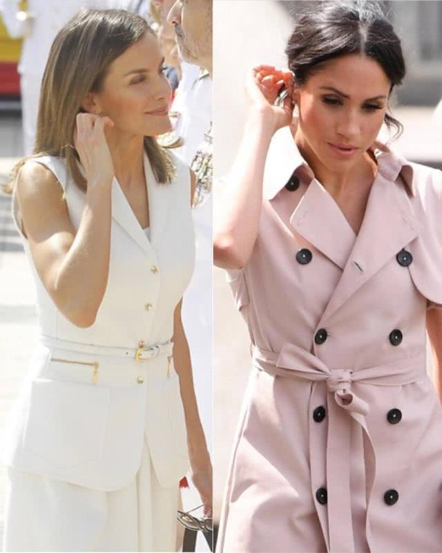作为欧洲王室两大微弱的时髦偶像,英国哈里王子的妻子梅根和西班牙莱蒂齐亚王后在穿衣风格上很类似,都偏心精约干练风。