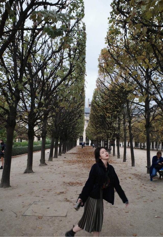百褶长裙忽然成了这两年很盛行的一个样式,但这个裙子它并不是很好调配,假如你穿得好的话就会非常有感觉,但你穿得欠好就会变得很老气,张雪迎在外面调配了一个纯黑色的夹克,外套里边则是调配了一个斑纹衬衫,配上精美的妆容和短发,整个人就像是从枫林里边走出来的复古少女相同,精美又妥当。