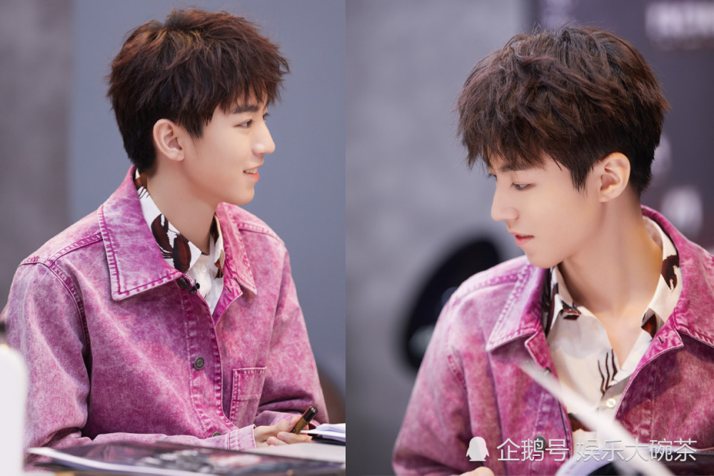 上半身的粉紫色现已够鲜亮动听了,没成想,下半身还调配同色系的牛仔裤,一身粉LOOK太出彩了,本来特性时髦并不一定要虚浮,斗胆的颜色就彻底突出了亮点。坐在桌子前,王俊凯垂头看材料,仔细点评的姿态也太令人圈粉了。