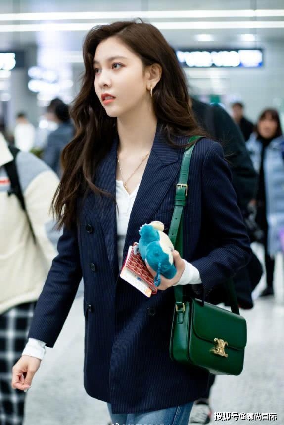 原标题:169cm宋妍霏气场不一样,简略穿西安装牛仔裤走机场,就好看到炸