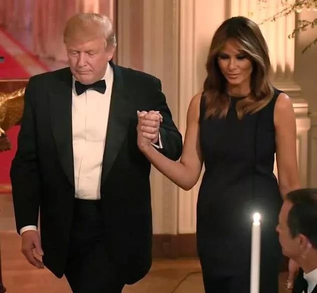 咱们咱们一起来看下川普配偶和伊万卡配偶平常的牵手照,比照后发现父女俩风格悬殊,图为川普牵着梅拉尼娅一起走进白宫晚宴的画面,他们牵手的姿态十分特别,川普将她的手举高,一边举着一边牵手