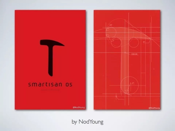 常常看到许多 LOGO 初看一般,但只需加上了栅格线,感觉瞬间就上了一个层次。有个比较知名的比如,便是锤子手机的 LOGO。是不是觉得右边的栅格线加上之后,瞬间巨大上了许多?