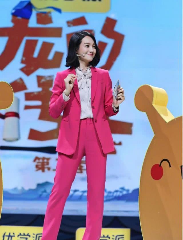 原标题:朱丹穿衣搭配品味真心好,玫红色西装套装录节目,齐肩发型超减龄