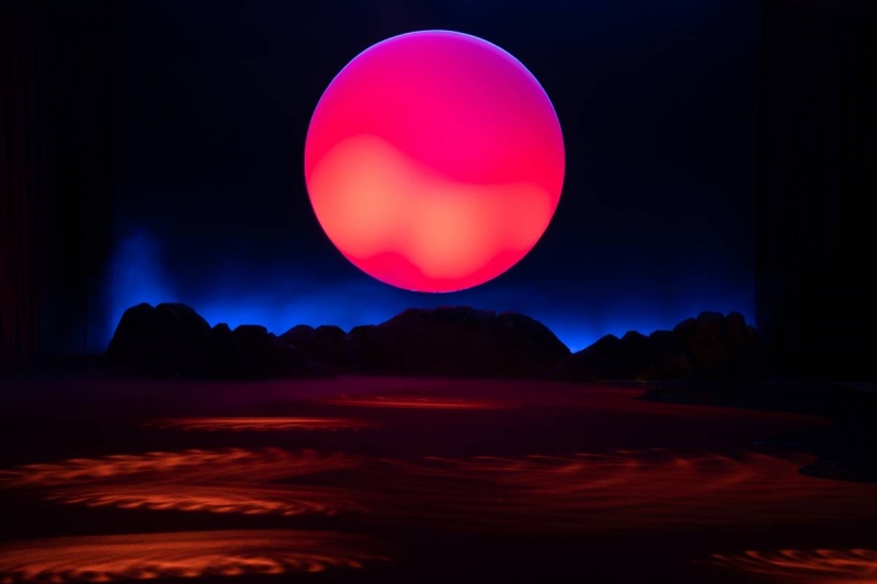 新品发布秀场营造一种沉浸式体验感,红色帷幕与墨蓝背景撞色融合,橙红灯光打造一轮巨日书写超现实幻境。观众席与秀台之间黑色镜面如水波蜿蜒,一种疏离感油然而生,似在眼前,亦似在彼岸。一曲高音咏叹调透彻秀场,恍若置身维也纳金色大厅入梦歌剧人生。数十位模特身穿轻纱礼服,游走于黑暗与光影之中。切身感受一场浪漫与现实的碰撞交融,鲜明个性,多元探索,异次美感,由视觉直击心扉。
