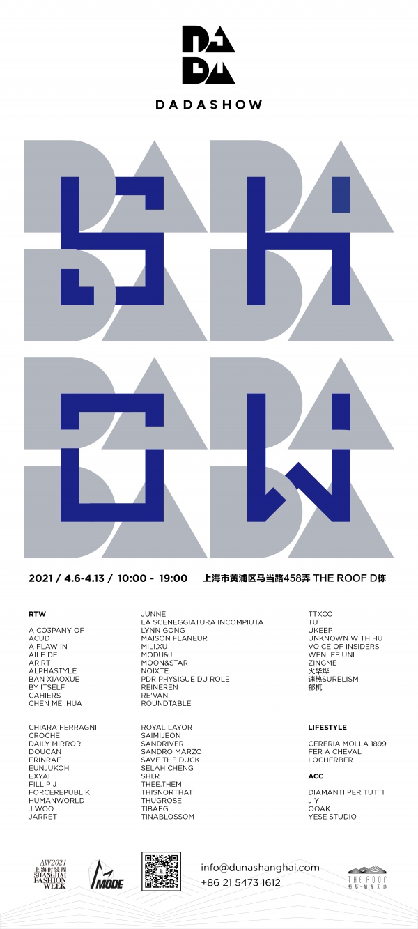 2021年4月,上海 – DADASHOW平台2021秋冬系列展会将于2021年4月6日起于黄浦区THE ROOF恒基·旭辉天地拉开序幕。展会时间跨度将从4月6日延续至4月13日,展览面积达2000平米,汇集众多海内外品牌与全国时尚买手。
