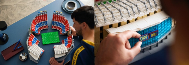 在乐高®诺坎普球场的拼搭过程中,可以遵循真实的场景,从球员通道看向整个球场,想象着在99,354名观众面前开球时振奋人心的瞬间。球场中看台可以分解为四个部分,以此来扩大视野,让拼搭者更好地欣赏其中的细节。除此之外,包括VIP入口和众多贴纸所展现的旗帜等诸多细节,则更好地帮助球迷及乐高粉丝进行装饰并展示专属巴塞罗那足球俱乐部的荣耀和光辉。