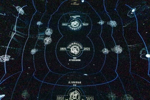 展览现场设有360°沉浸式体验空间将宝玑的历史故事于漫天星河中娓娓道来,令人仿佛置身浩瀚宇宙。旋转不停的陀飞轮,汇集了宝玑先生对天文学、物理学等多项学科的融会贯通与天才巧思,如同照亮夜空的璀璨繁星,诠释隽永而纯粹的宝玑风格。