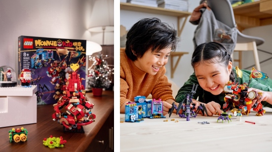 国潮机甲圣诞风——乐高®悟空小侠系列圣诞树的改装零件,来自于80012齐天大圣黄金机甲和80021悟空小侠黄金神兽,灵感源自中国经典名著《西游记》中的孙悟空,并融合现代机甲设计。圣诞树主体以红金配色元件拼搭,在视觉上呈现强劲的冲击力,在圣诞之际,乐高悟空小侠系列圣诞树将国潮引入,创造独特圣诞氛围感。